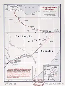 The Ethiopian government argued that the conflict was a result of armed bandits being sent across the border by Somalia to harass the country into ceding a large slice of Ethiopian territory, to which the Somali government repeatedly denied that the it either inspired or fomented the troubles in Ogaden. Despite the Ethiopian government's allegations, it was widely recognized that the Somali government could assert no real control over the Ogaden insurgents, as the rebels had made it clear that they were not willing to take orders from Mogadishu, despite desiring its recognition.[12][15][18] A CIA report submitted to U.S. President Lyndon B. Johnson would conclude, "Somali authorities show no ability to control the tribesmen whose depredations so infuriate the Ethiopians."[19]