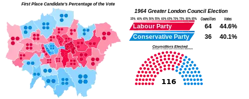 The first election to the Greater London Council took place a month before the first election to the 32 London borough councils on 7 May 1964.