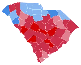 Goldwater was the first Republican to ever carry Florence, Greenwood, Lee, McCormick, and Saluda Counties.[18] He was the first national GOP nominee to carry Horry, Marion, and Laurens Counties since Ulysses S. Grant in 1872; Darlington County since Rutherford B. Hayes in 1876; and Berkeley County since Benjamin Harrison in 1892.[18]