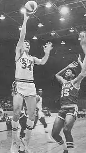 In June 1967, NBA leading scorer Rick Barry left the San Francisco Warriors to sign with Oakland, making him the seventh player and the first superstar to defect to the upstart league. The landmark three-year contract offer from singer and team owner Pat Boone was estimated to be worth $500,000 and would make him one of basketball's highest-paid players.[4] The agreement included 15 percent ownership in the franchise, with led Barry to remark, "The offer Oakland made me was one I simply couldn't turn down." In August, however, a superior court judge upheld the reserve clause in Barry's contract and ruled that he was obligated to play for the Warriors or sit out for the entire season.[5] Barry ultimately chose to sit out for the year, rather than play for San Francisco.[6]