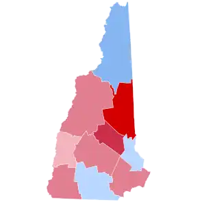 The county map results followed a familiar pattern of the post-New Deal era, with Nixon winning seven counties to Humphrey’s three. Since Franklin Roosevelt’s election in 1932, in every close election or Democratic victory, Hillsborough County, Strafford County, and Coös County would vote Democratic, while Carroll County would be the most Republican county. This pattern endured in 1968 for the last time, with Humphrey winning the three core New Deal Democratic counties, while Carroll County was the only county in the state where Nixon broke seventy percent of the vote. Humphrey's strongest county was Coös County, which he won by a 53–44 margin making this one of only three occurrences since 1892 where it has supported a losing presidential candidate. Nixon thus became the first Republican to win the White House without carrying Coös County since Benjamin Harrison in 1888 and the first ever to win without Strafford County.[3]