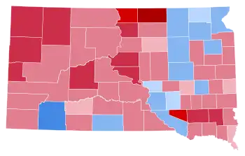 South Dakota was won by former Vice President Richard Nixon (R–California), with 53.27 percent of the popular vote, against Vice President Hubert Humphrey (D–Minnesota), with 41.96 percent of the popular vote. Independent candidate George Wallace would carry five Southern states, but finished with a mere 4.76 percent of South Dakota's popular vote.[3][4] Although the West River region of South Dakota possessed powerful racial conflicts akin to Wallace's native South – although between Whites and Native Americans rather than between Whites and Blacks – significant anti-Southern feeling amongst its Yankee descendants limited Wallace's appeal even there,[5] and in the East River with fewer Native Americans and a strong Scandinavian-American influence,[6] Wallace possessed generally insignificant appeal. Although he performed reasonably in some West River counties, within the more populous East River Wallace cracked half his national percentage (6.75%) only in Hyde and Sully Counties. Consequently, South Dakota proved Wallace's eighth-weakest state nationally.