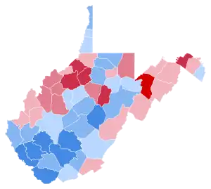 | Wetzel | 4,038 | 45.12% | 4,122 | 46.06% | 789 | 8.82% | -84 | -0.94% | 8,949 |