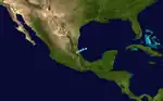 A trough in the western Gulf of Mexico produced an area of thunderstorms. On August 7, a Hurricane Hunters flight observed a circulation, indicating that a tropical depression developed. The system moved southwestward, making landfall near Tuxpan in northeastern Mexico early on August 8. It quickly dissipated after moving ashore.[15]