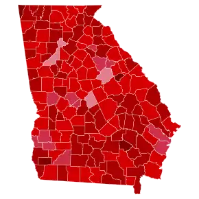 As of the 2020 presidential election, this is the last time the following counties have ever voted Republican: Calhoun, Clay, Fulton (which contains the state's capital and largest city, Atlanta), Macon, Stewart, Talbot, Taliaferro, and Warren as well as the only time Hancock voted Republican.[8] This was the first time any candidate had swept every Georgia county.[9]