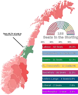 Social democracy | Centre-left | Trygve Bratteli | 46.5% | 74 / 155 | |