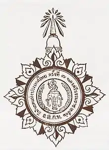 The emblem of 1973 Thailand National Games was a brown circle, with the Phra Boromathat Chedi or Phra That Nakhon on top, the emblem of the Sports Authority of Thailand on the inside, and surrounded by the text