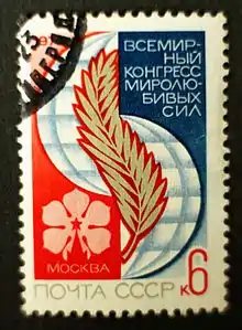 The 1973 World Congress of Peace Forces was held in Moscow, Russian SFSR, Soviet Union, October 25-October 31, 1973. At the congress over 3200 delegates from 143 countries, representing more than 1100 political parties, national organizations and movements. Representatives from 123 international organizations took part in the event.[1]