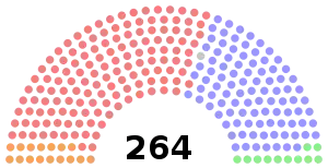 | Total seats: | 23 | 19 | 13 | 13 | 88 | 74 | 10 | 11 | 4 | 7 | 1 | 1 | 264 | ||