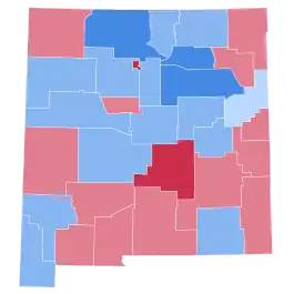 A reliable bellwether state in presidential elections up to this point, this was the first election since gaining statehood that New Mexico did not back the winning presidential candidate, and the only time, as of 2020, that New Mexico did not back the national popular-vote winner (in 2000 and 2016, it voted for the candidate who won the popular vote but not the electoral vote), giving it the longest current streak in the nation. It is also the only election a Democrat has won while losing New Mexico. As of the 2020 presidential election, this is the last election in which Torrance County and Quay County voted for a Democratic presidential candidate.[2]