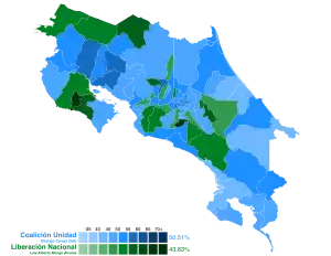 The Left also made a coalition; the three main far-left parties at the Left of PLN; Popular Vanguard, Costa Rican Socialist Party and Revolutionary People's Movement made the United People coalition,[7] nominating former PLN member and doctor Rodrigo Gutierrez. Gutierrez had no possibilities to be president but the coalition did help the Left having a higher voting than usual and a large group in Congress. For many historians this election marks the beginning of Costa Rica's two-party system.[8]
