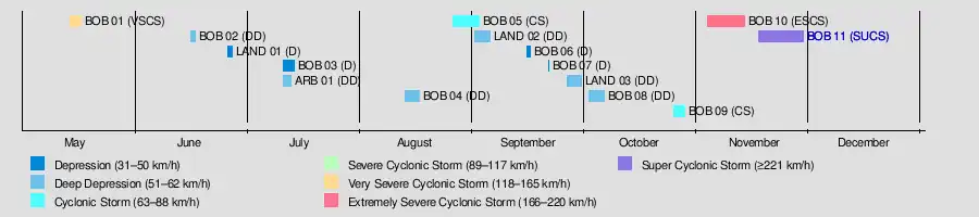 Another tropical depression formed in the Bay of Bengal on October 25 and moved northwestward.[1] The depression became a cyclonic storm the following day[3] The storm then turned to the northeast and then back to the northwest[1] were its winds peaked at 45 mph (70 km/h) before dissipating off the coast of Bangladesh on October 28.[3]