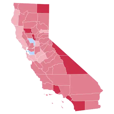1980 marks the most recent election in which California voted more Republican than the United States as a whole.[3] Reagan is also the last Republican candidate to carry the counties of Marin and Santa Cruz in a presidential election. This election indeed constitutes the most Republican California has voted relative to the whole nation since 1928; here, it was widely believed that Carter lacked understanding of critical Western issues, most importantly water development.[4] This also remains the last time a Republican won the San Francisco Bay Area, and the last one in which San Francisco gave less than 60% of the vote to the Democratic candidate. As of 2020, this is the last presidential election in which California voted more Republican than Texas.