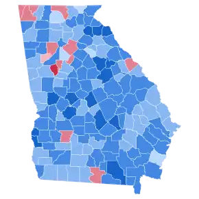 As of the 2020 presidential election, this is the last time Georgia voted more Democratic than the nation as a whole. It is also the last time in which the counties of McDuffie, Towns, Gilmer, Whitfield, Union, Rabun, Stephens, Jackson, Banks, Murray, Habersham, Madison, Hall, White, Dawson, Gordon, Paulding, Spalding, Troup, Forsyth, Upson, Coweta, Effingham, Glascock, Bulloch, Houston, Bartow, Oconee, Glynn, Cherokee, Toombs, Thomas, Floyd, Colquitt, Camden, Echols, Charlton, Pierce, Coffee, Bryan, Walton, Ware, Oglethorpe, Evans, Tattnall, Tift, Pike, Harris, Carroll, Appling, Barrow, and Wayne voted for a Democratic presidential candidate.[1] Henry County would not do so again until 2016.