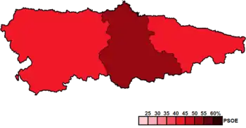![]() Constituency results map for the General Junta of the Principality of Asturias | |||||||||||||||||||||||||||||||||