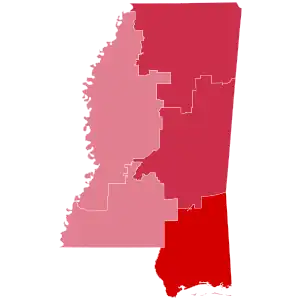 As of the 2020 presidential election, this is the last election in which the following counties voted for a Republican presidential candidate: Clay, Issaquena, Jefferson Davis, Sunflower, and Tallahatchie.[2] This marked the first time in history that Mississippi voted Republican in consecutive elections (or that a Republican carried the state twice), and the first such occasion for any party since 1956.