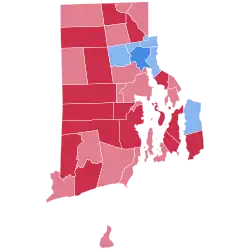 As of 2020, this is also the most recent time the following municipalities backed a Republican candidate for president: Bristol, Cranston, Cumberland, Jamestown, Narragansett, Newport, New Shoreham, South Kingstown, Tiverton, Warren, Warwick, Westerly, and Woonsocket.