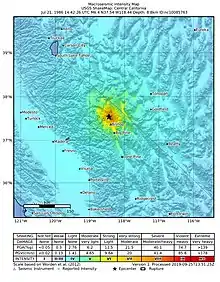 - 1 2 Cockerham, R.S.; Corbett, E.J. (1987), "The July 1986 Chalfant Valley, California, earthquake sequence: Preliminary results", Bulletin of the Seismological Society of America, 77 (1): 280–285, Bibcode:1987BuSSA..77..280C, doi:10.1785/BSSA0770010280