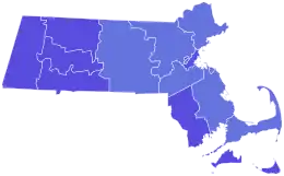 | Worcester | 63.1% | 122,216 | 32.7% | 63,373 | 4.2% | 8,141 | 193,730 |