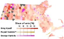 | Barnstable | 59.7% | 41,644 | 35.3% | 24,641 | 4.9% | 3,449 | 69,734 |