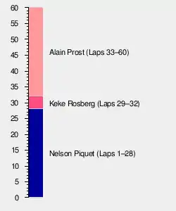 | 5 | 2 | McLaren-TAG | 58 | Out of Fuel | 6 | 2 | |
