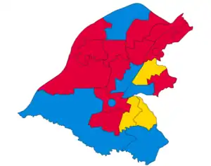 | Labour Party | 31,703 (39.6%) | 14 (60.9%) | 14 / 23 |