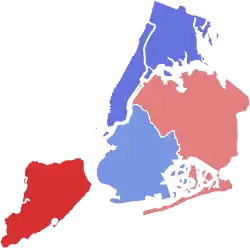 Whereas the two preceding mayoral elections of the 1980s had been landslide victories for Koch, who had not lost a single borough and had received the co-endorsement of the Republican Party in 1981, this election was a closely contested race. Dinkins won majorities in the Bronx, Manhattan, and Brooklyn, while Giuliani carried Queens and won a landslide on Staten Island. Four years later, in the 1993 election, Dinkins and Giuliani would face each other again in a re-match and Dinkins would narrowly lose to Giuliani in his bid for re-election.