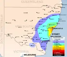 The effects were felt over an area of around 200,000 square kilometres (77,000 sq mi) in the state of New South Wales, with isolated reports of movement in areas up to 800 kilometres (500 mi) from Newcastle.[2] Damage to buildings and facilities was reported over an area of 9,000 km2 (3,500 sq mi).