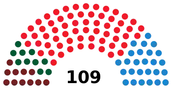 Last election 60 seats, 47.0% 28 seats, 22.2%[lower-alpha 1] 19 seats, 17.8%