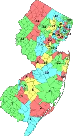 As required, the New Jersey legislature redistricted its state legislative districts in advance of the 1991 election. Redistricting was considered to have favored Republicans,[1][2] reflecting relative growth in the suburbs versus the state's Democratic urban cores.[1]