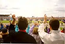 Fans invading the track at Copse Corner following Nigel Mansell's victory