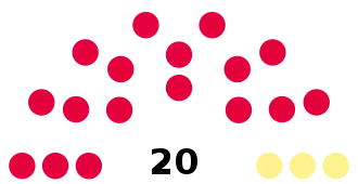 Party Seats Gains Losses Net gain/loss Seats % Votes % Votes +/−