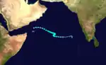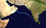On September 29, a tropical depression formed over India. It tracked westward, slowly strengthening to a tropical storm on the 1st due to vertical shear. The shear abated enough to let the storm reach a peak of 65 mph winds, but it returned, weakening the system to a 50 mph storm just before hitting eastern Oman on the 3rd.