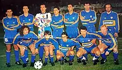 The first was held in Mineirão Stadium in Belo Horizonte, where both teams tied 0–0. In the second leg, held in La Bombonera in Buenos Aires, Boca Juniors beat Cruzeiro 1–0 to claim their first Copa de Oro title.[1][2][3]