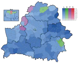 Presidential elections were held in Belarus on 23 June 1994, with a second round on 10 July.[1] They were the first national elections held in Belarus since the country seceded from the Soviet Union three years earlier. The result was a victory for Alexander Lukashenko, who received 81% of the vote in the second round. Voter turnout was 79% in the first round and 71% in the second.[2]