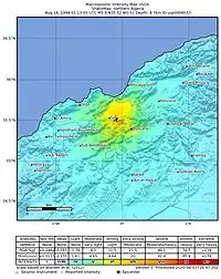 The 1994 Mascara earthquake occurred on August 18 at 02:13 local time with an epicenter in a rural part of Algeria. The earthquake measured 5.8 on the moment magnitude scale (Mw) and had a depth of 10 km (6.2 mi).[1] It caused the deaths of 171 people, left up to 12,500 homeless, and destroyed thousands of homes in Mascara Province.[2] Many homes were damaged or destroyed due to poor building quality which collapsed on the inhabitants and resulted in a majority of the casualties. The national government launched a rapid response effort in its aftermath.