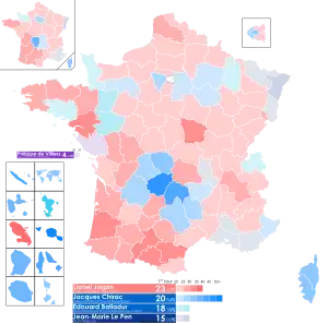 Lionel Jospin won the first round, in what appeared to be an electoral recovery for the Socialist Party. His right-wing challenger for the runoff vote on 7 May was Jacques Chirac and not Edouard Balladur. Defeated, Balladur endorsed the RPR candidate. Jean-Marie Le Pen repeated his good result of the previous presidential election.
