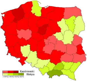 Presidential elections were held in Poland on 5 November 1995, with a second round on 19 November.[1] The leader of Social Democracy, Aleksander Kwaśniewski, and incumbent President Lech Wałęsa advanced to the second round. Kwaśniewski won the election with 52% of the vote in the run-off against 48% for Wałęsa.