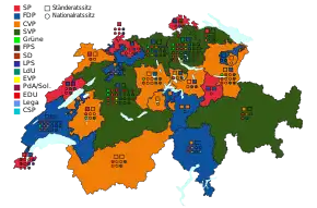 | Ticino | 8 | 189,625 | 99,681 | Free Democratic Party | 233,392 | 3 | |