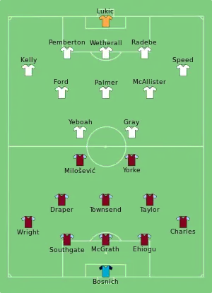 In the first half the teams were separated by a goal from Savo Milošević. After half-time, Leeds United tired and Aston Villa took advantage to eventually win 3–0. Goals from Ian Taylor and Dwight Yorke completed the scoring.[2] This was the beginning of the end for Leeds United manager Howard Wilkinson, as he was heckled by the club's fans for his and the team's failure. However, it was Villa's fifth success in the competition, at the time equalling the record set by Liverpool.