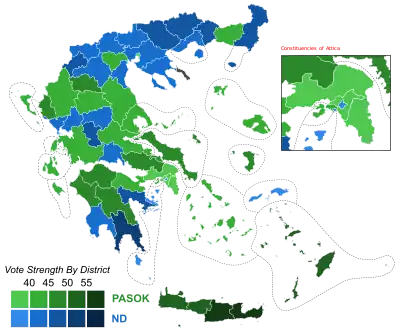 | PASOK | 2,814,779 | 41.49 | 162 | –8 | |
