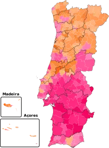 | Azores | 40,746 | 43.60% | 52,715 | 56.40% | 50.81% | |