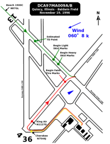 - 1 2 3 4 5 "Runway Collision, United Express Flight 5925 and Beechcraft King Air A90, Quincy Municipal Airport, Quincy, Illinois, November 19, 1996" (PDF). Aircraft Accident Report. National Transportation Safety Board. July 1, 1997. NTSB/AAR-97/04. Retrieved September 16, 2017. - This includes the response to Voorhis. The copy of the report at the Embry-Riddle Aeronautical University does not have the Voorhis response.