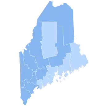 | Aroostook | 18,022 | 51.80% | 10,400 | 29.89% | 5,747 | 16.52% | 623 | 1.79% | 7,622 | 21.91% | 34,792 |