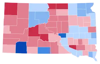 As of the 2020 presidential election, this is the last election in which South Dakota was seriously contested, as well as the last time Beadle County, Bon Homme County, Brule County, Charles Mix County, Deuel County, Grant County, Jerauld County, Kingsbury County, Sanborn County, and Union County voted for a Democratic presidential candidate.[2]