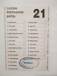 | People's Movement for Latvia | 16,647 | 1.74 | 0 | –16 | |
