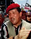 The Chávez platform comprised three basic pledges. First to begin his presidency by abolishing Venezuela's old puntofijismo political system of two-party patronage, and opening up political power to independent and third parties. Second, to end corruption. Third, to eradicate poverty in Venezuela. In working to gain the trust of voters, Chávez drafted an agenda that drew heavily on his interpretation of Bolivarianism.[7] Chávez also utilized his charisma and flamboyant public speaking style—noted for its abundance of colloquialisms and ribald manner—on the campaign trail to help win the trust and favor of a primarily poor and working class following.[7][8] On one occasion, he threatened to "fry" the heads of his opponents.[9]