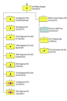 - Headquarters, 1st Artillery Brigade, at Airfield Camp, Netheravon[35]