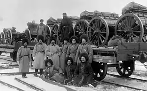 On 12 February 1901, the 1st East Siberian Artillery Brigade was subordinated to the 1st Siberian Army Corps. With the beginning of hostilities during the Russo-Japanese War, the brigade (at the time consisting of four batteries) became part of the Russian Manchurian Army in 1904. Later that year, on 15 February, it was renamed the 1st East Siberian Rifle Artillery Brigade. Around this time the 2nd battery formerly of the 23rd Artillery Brigade became part of the unit. The brigade, along with its corps, later became part of the 1st Manchurian Army.[1] In the war against Japan it took part in the Battle of Te-li-Ssu (14–15 June 1904)[2] and in the Battle of Mukden (20 February–10 March 1905).[3] At least one officer of the brigade was awarded the Order of St. George during the war.[4] On 19 February 1906m it was transferred to peacetime status and remained as part of the 1st Siberian Army Corps. In 1907, it was reformed, with the batteries being organized into two divisions of three batteries each. In September 1910, the unit was renamed the 1st Siberian Rifle Artillery Brigade and was made part of the 1st Siberian Rifle Division. In addition, it received the former East Siberian mountain artillery division.[1]