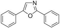 2,5-Diphenyloxazole (PPO) is an organic scintillator.[2] It is used as a wavelength shifter (also called a "primary shifter" or "fluor"), which means that it converts shorter wavelength light to longer wavelength light. Its output spectrum peaks at 385 nm, which is in the range of UV light.
